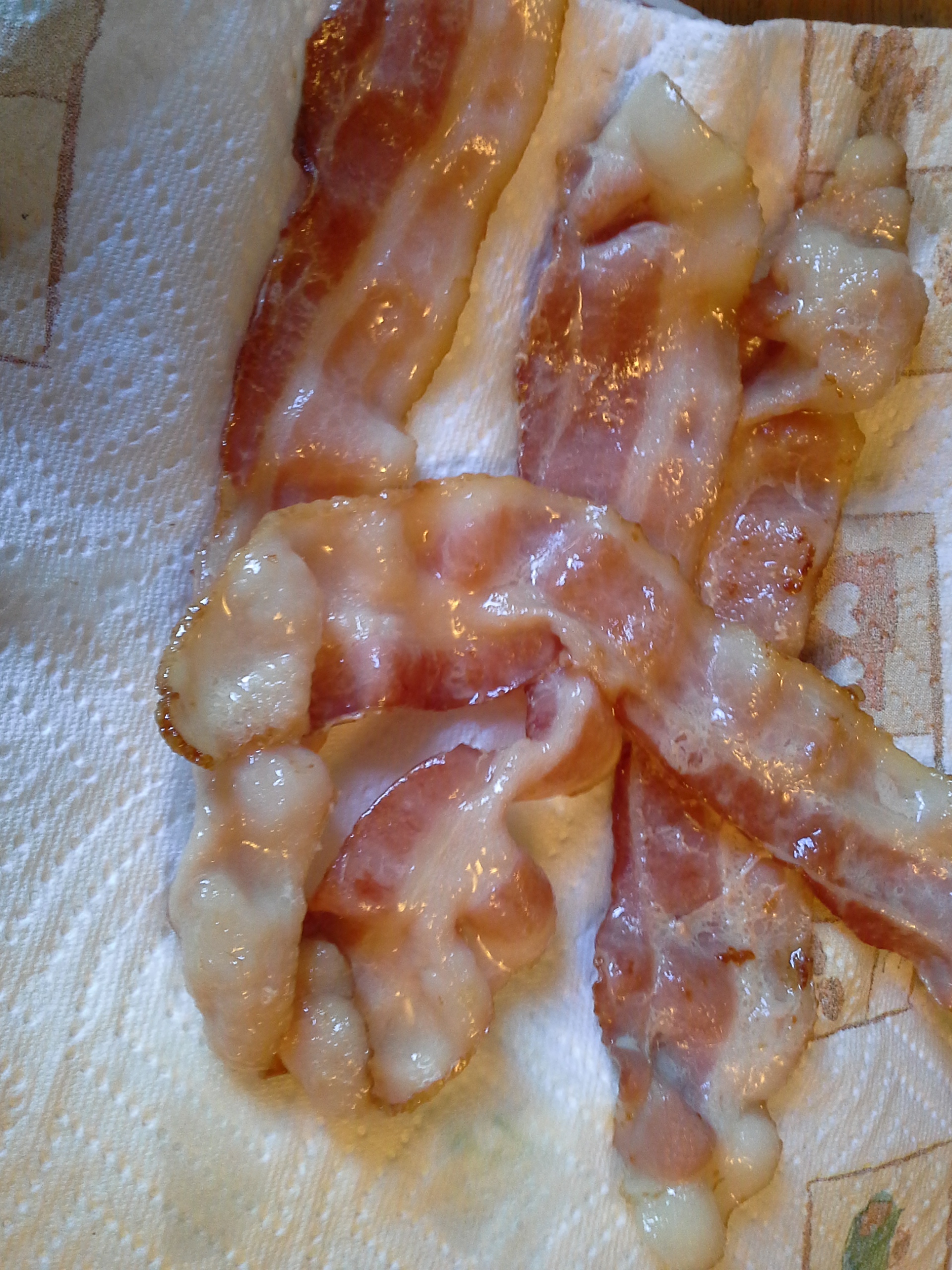 2 slices low-sodium, no sugar added bacon: 80 calories, 0 g carbs