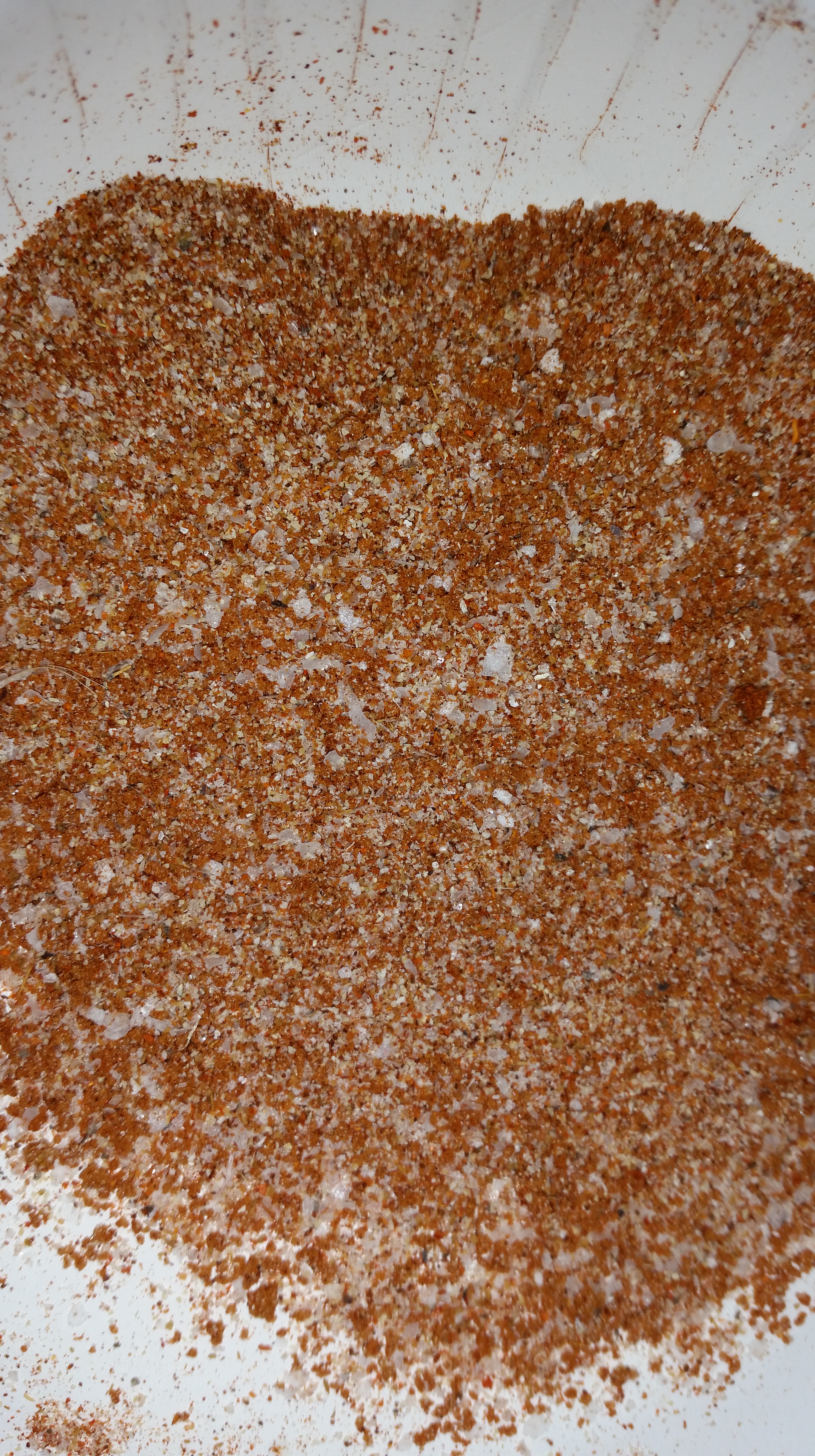 Combine all spices in a bowl and mix well with a fork or spoon to break up any lumps. Generously coat rib rack with spice mixture (I used half the dry rub mix and got my 2 lb. rack generously covered). Tap off excess spice rub and place rib rack in zip-top bag and refrigerate overnight, or at least 3-4 hours.