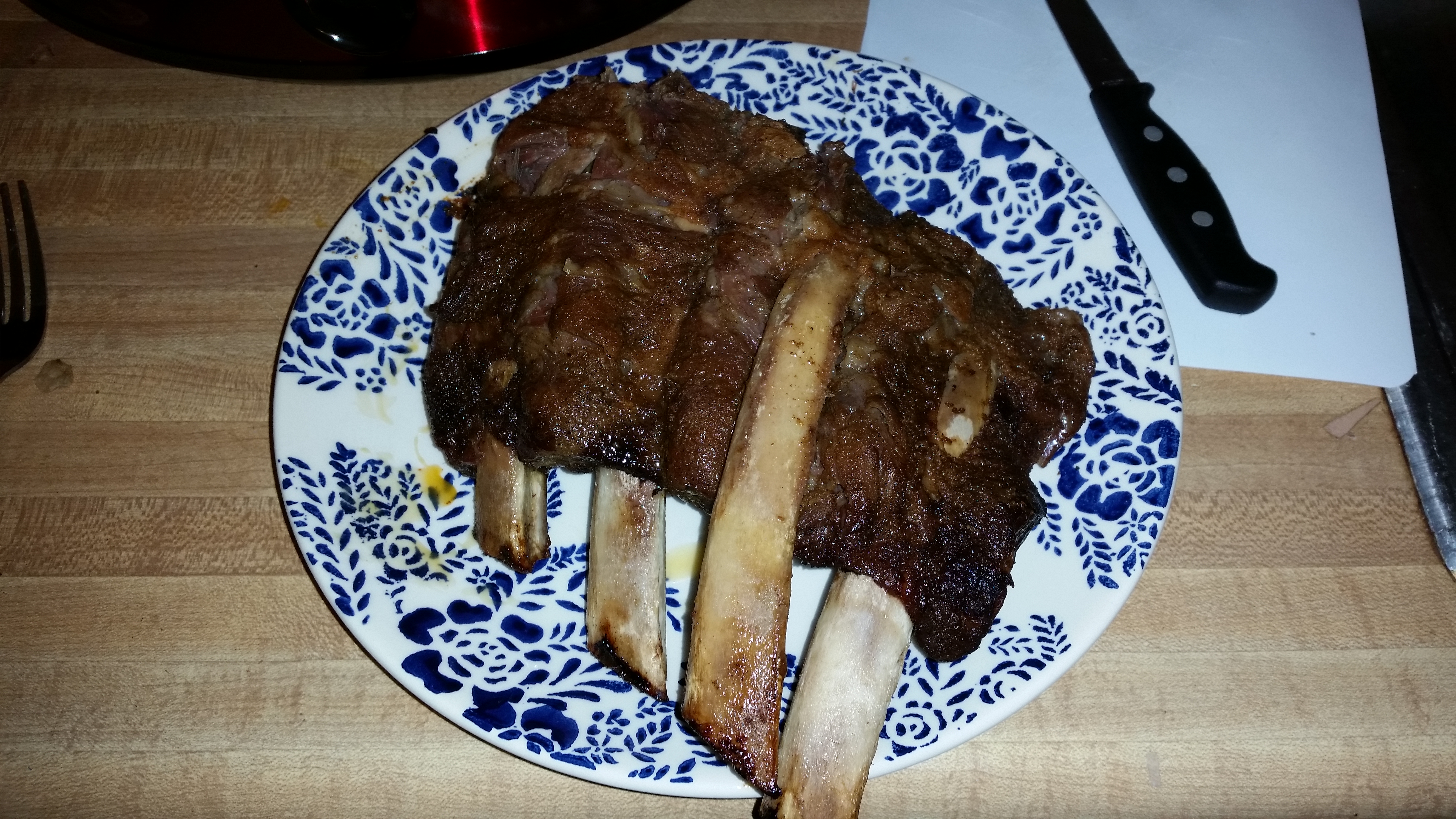 I grew up in New Mexico, about an hour from the Texas border. So I grew up eating western-style barbecue—dry rubs with lots of spices. So when I saw beef ribs on sale at Publix yesterday, I grabbed a small slab and then sat down to figure out how best to do them without adding lots of sugary BBQ sauce to them.