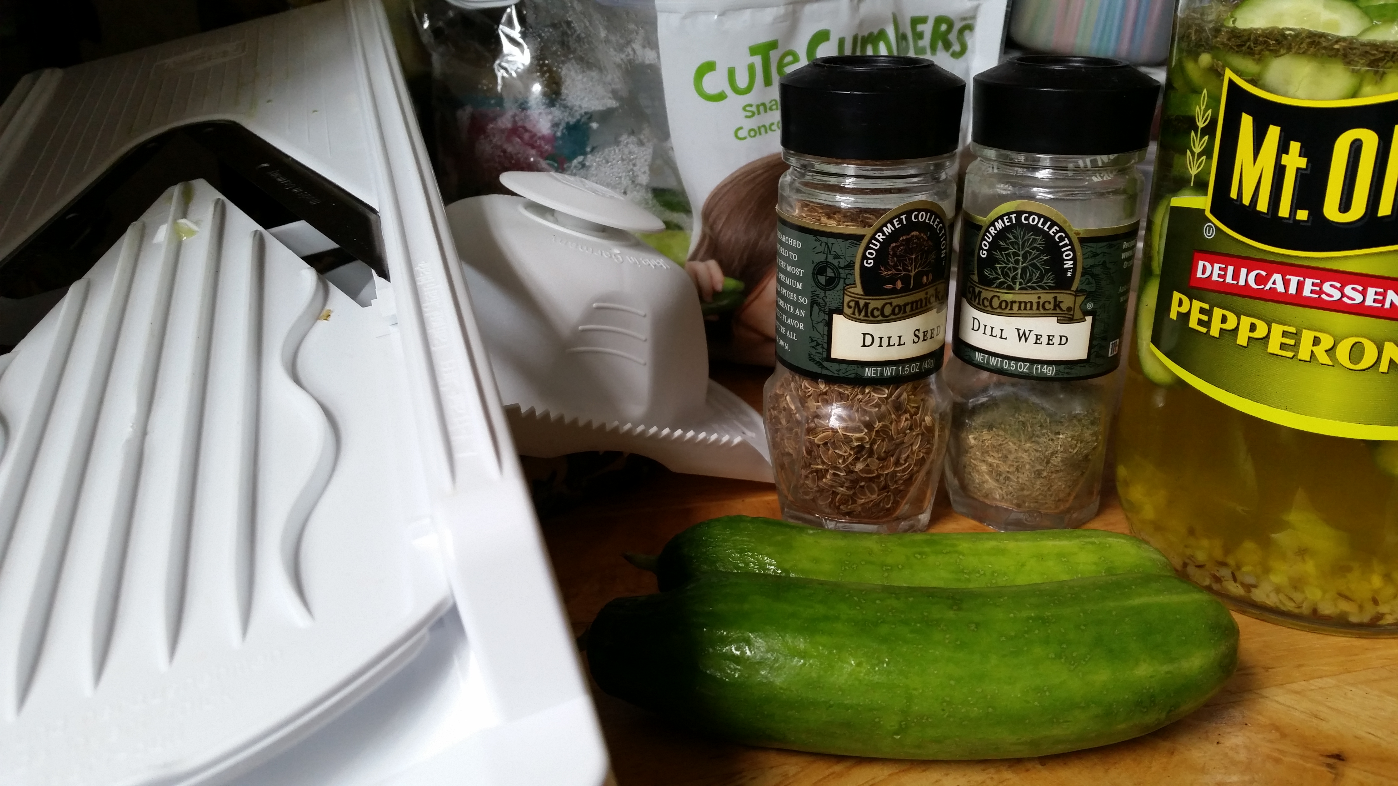 - 8 to 12 mini (salad) cucumbers, sliced—enough to mostly fill jar